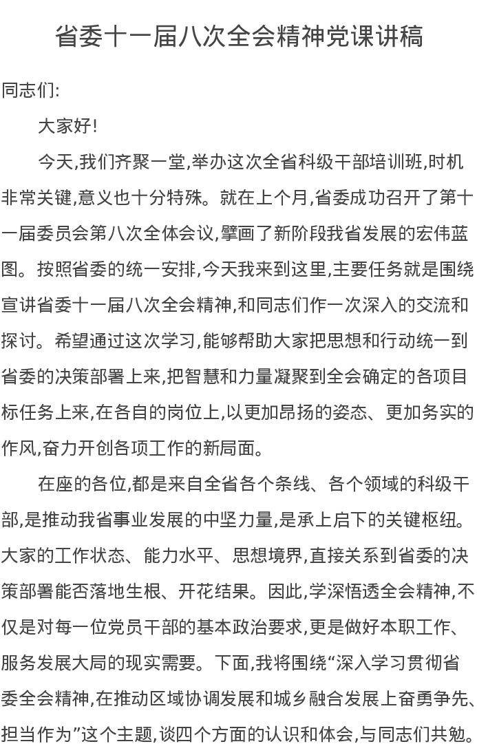 省委十一届八次全会精神党课讲稿