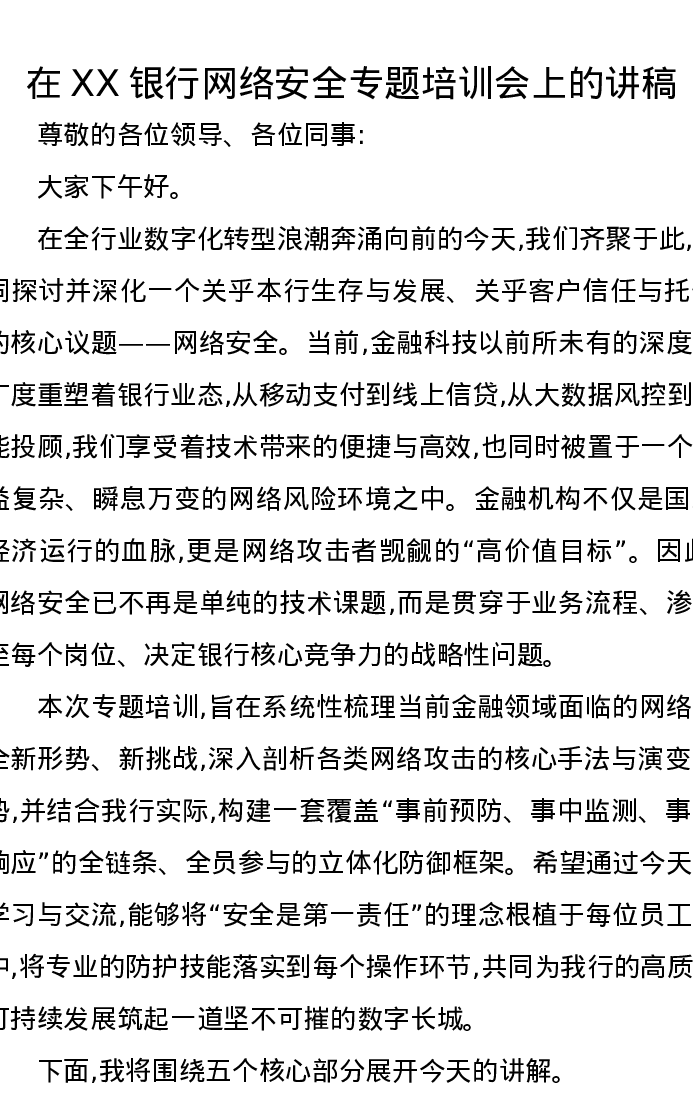 在XX银行网络安全专题培训会上的讲稿