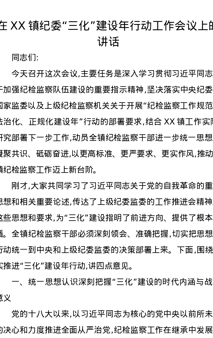 在XX镇纪委“三化”建设年行动工作会议上的讲话