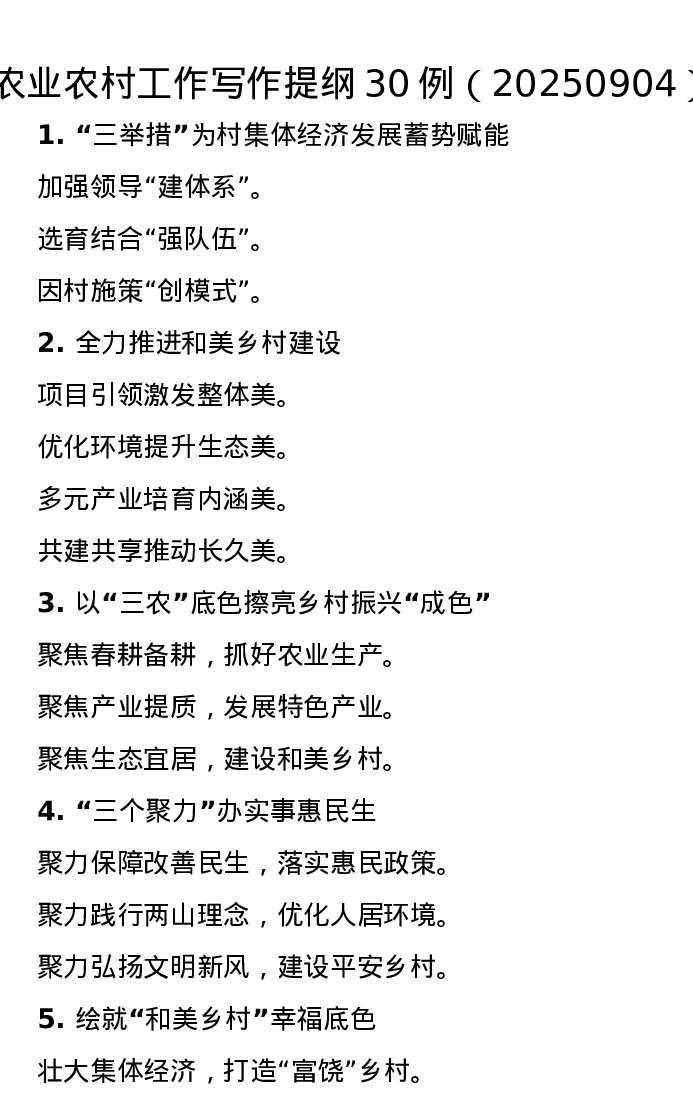农业农村工作写作提纲30例(20250904)