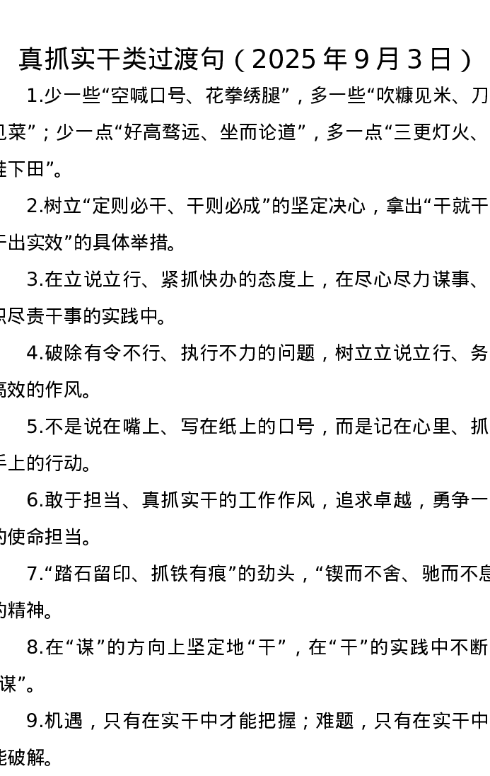 真抓实干类过渡句(2025年9月3日)