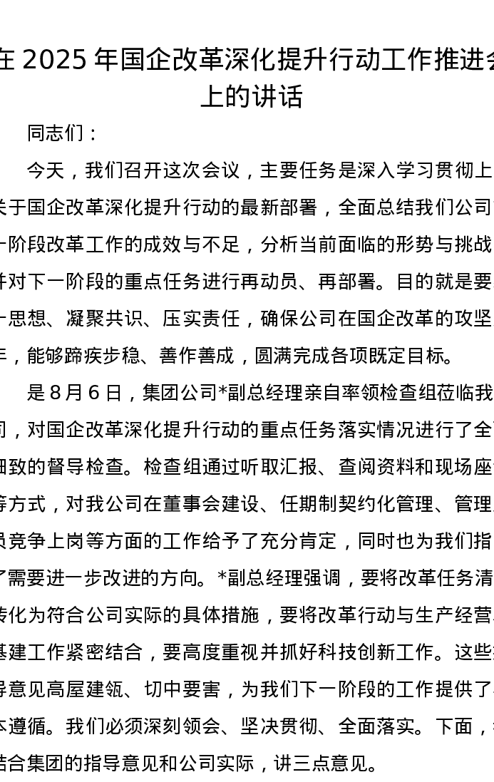 在2025年国企改革深化提升行动工作推进会上的讲话