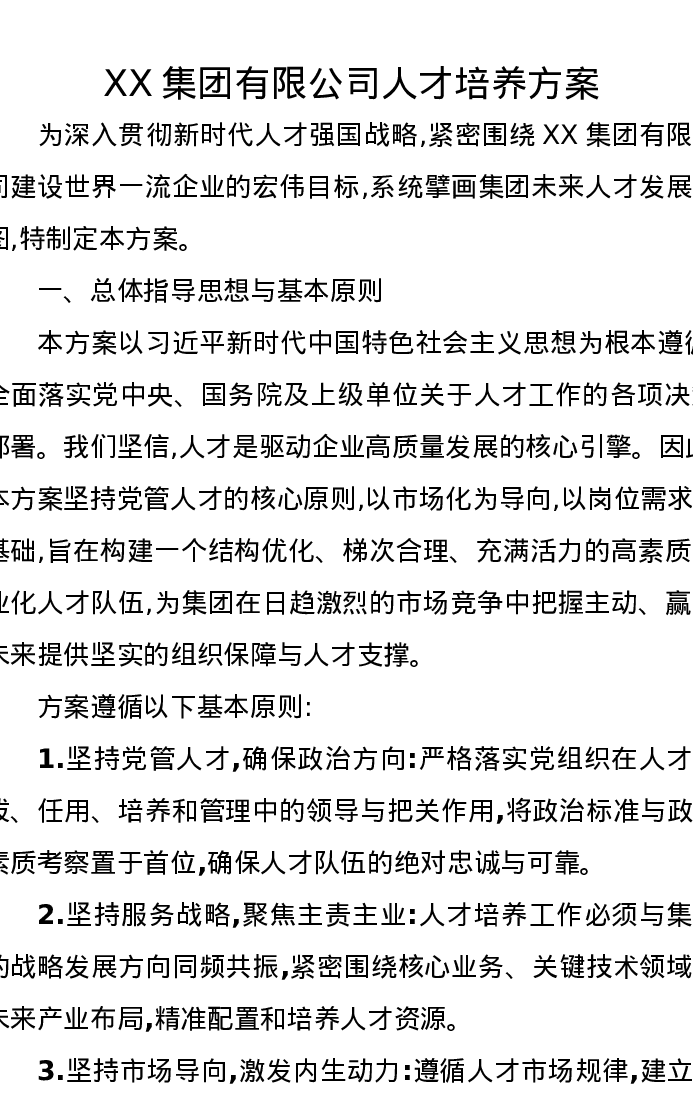 XX集团有限公司人才培养方案