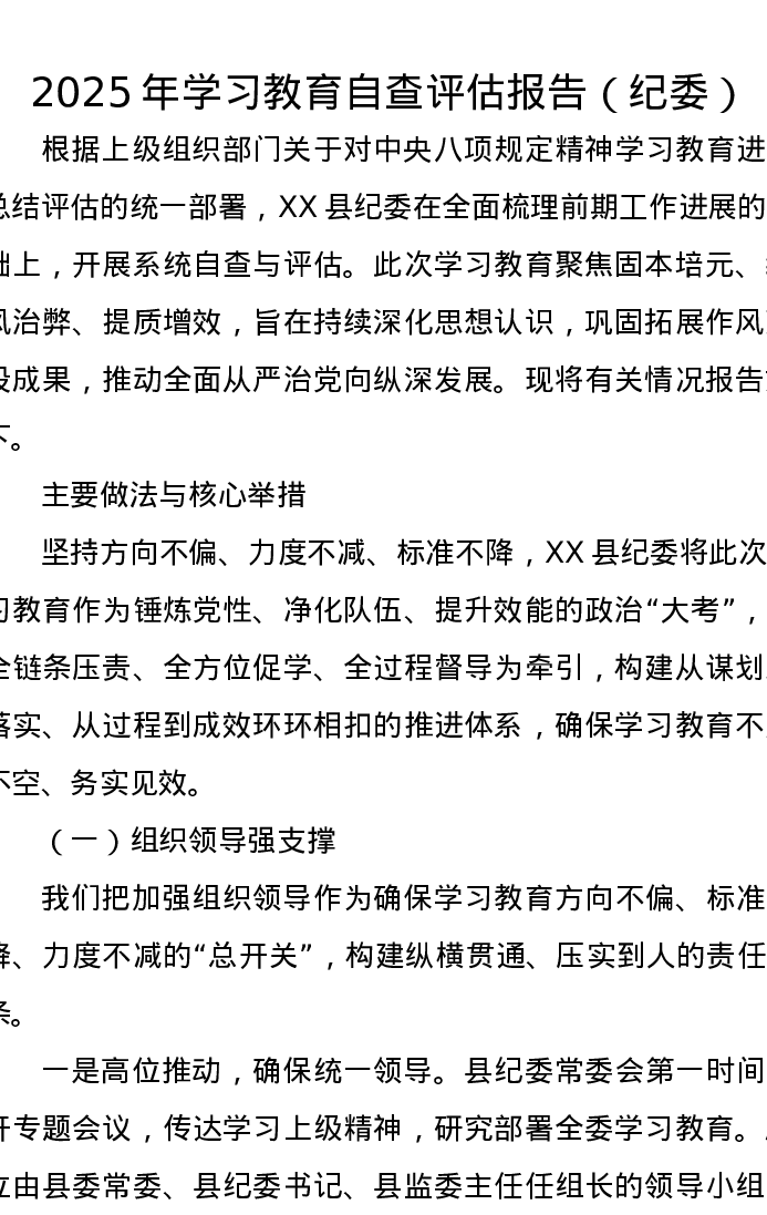2025年贯彻中央八项规定精神学习教育自查评估报告(纪委)