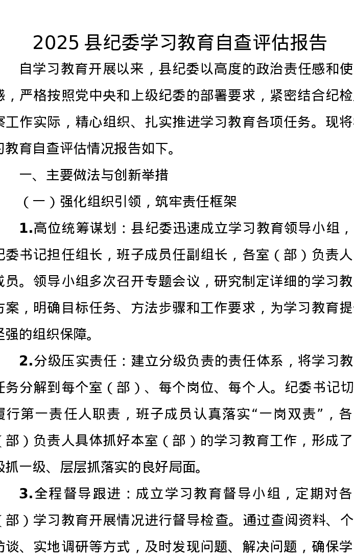 2025县纪委贯彻中央八项规定精神学习教育自查评估报告