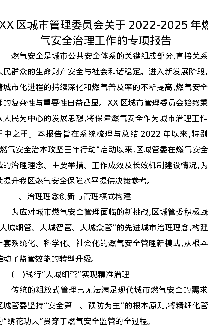 XX区城市管理委员会关于2022-2025年燃气安全治理工作的专项报告