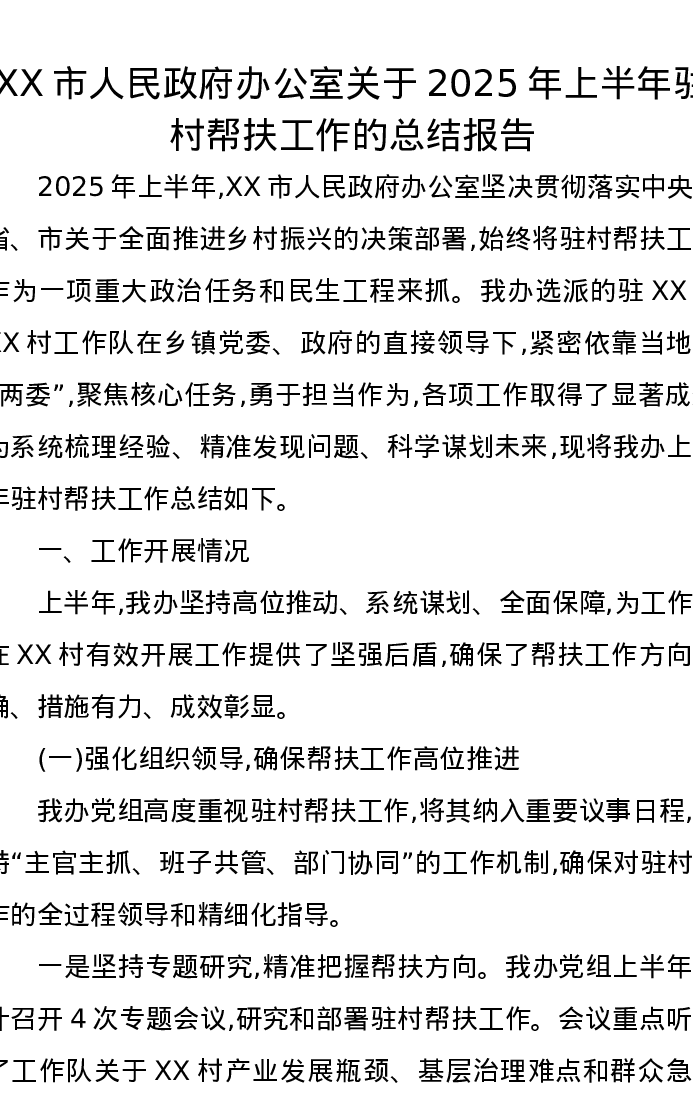 XX市人民政府办公室关于2025年上半年驻村帮扶工作的总结报告