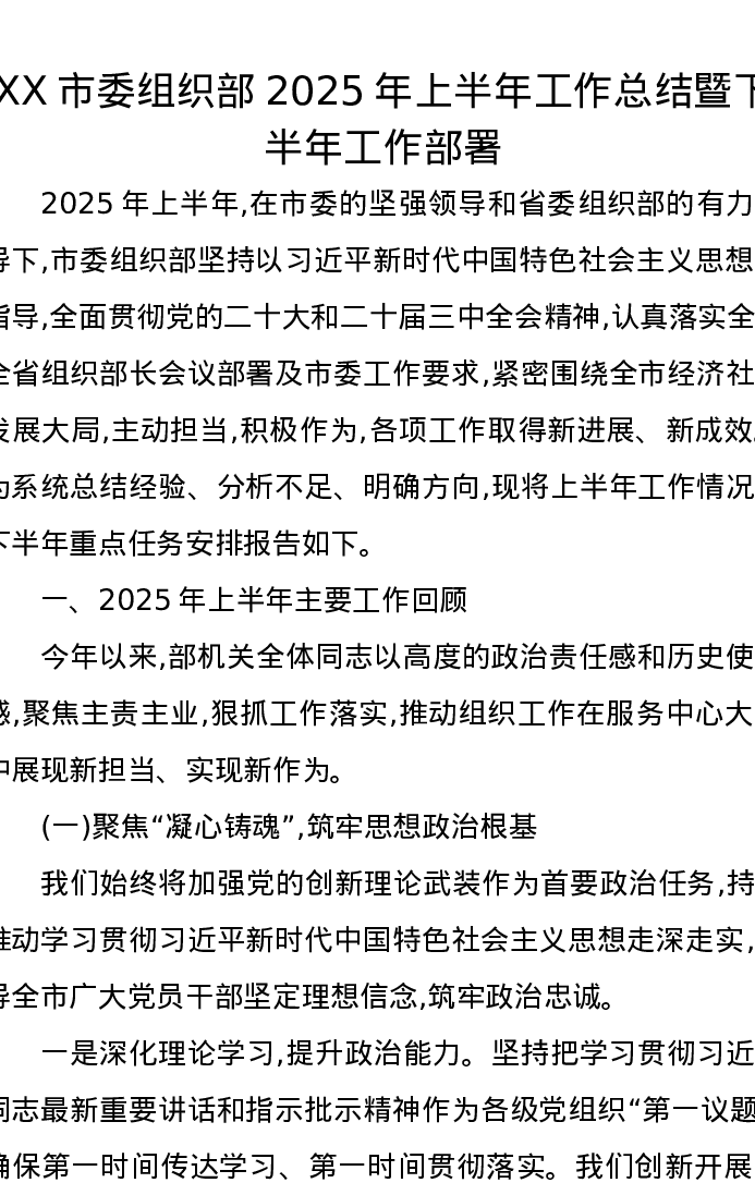 XX市委组织部2025年上半年工作总结暨下半年工作部署