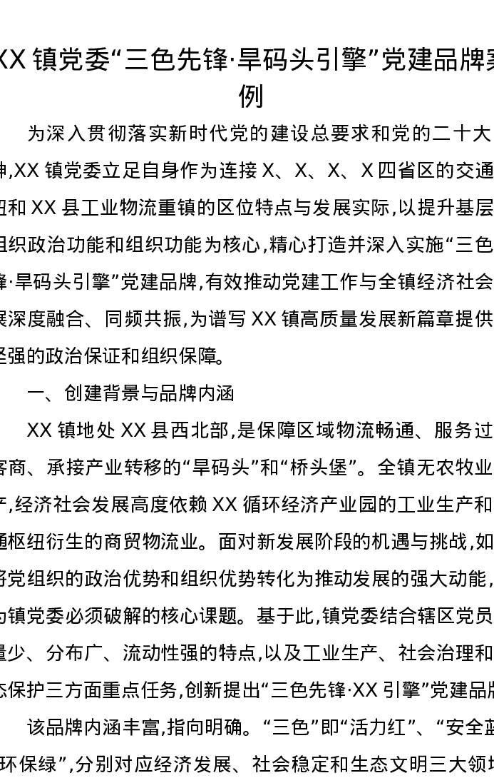 XX镇党委“三色先锋·旱码头引擎”党建品牌创建工作情况报告