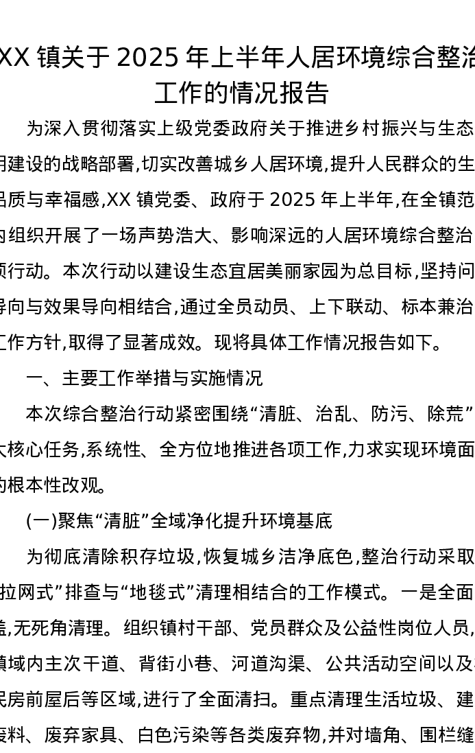 XX镇关于2025年上半年人居环境综合整治工作的情况报告