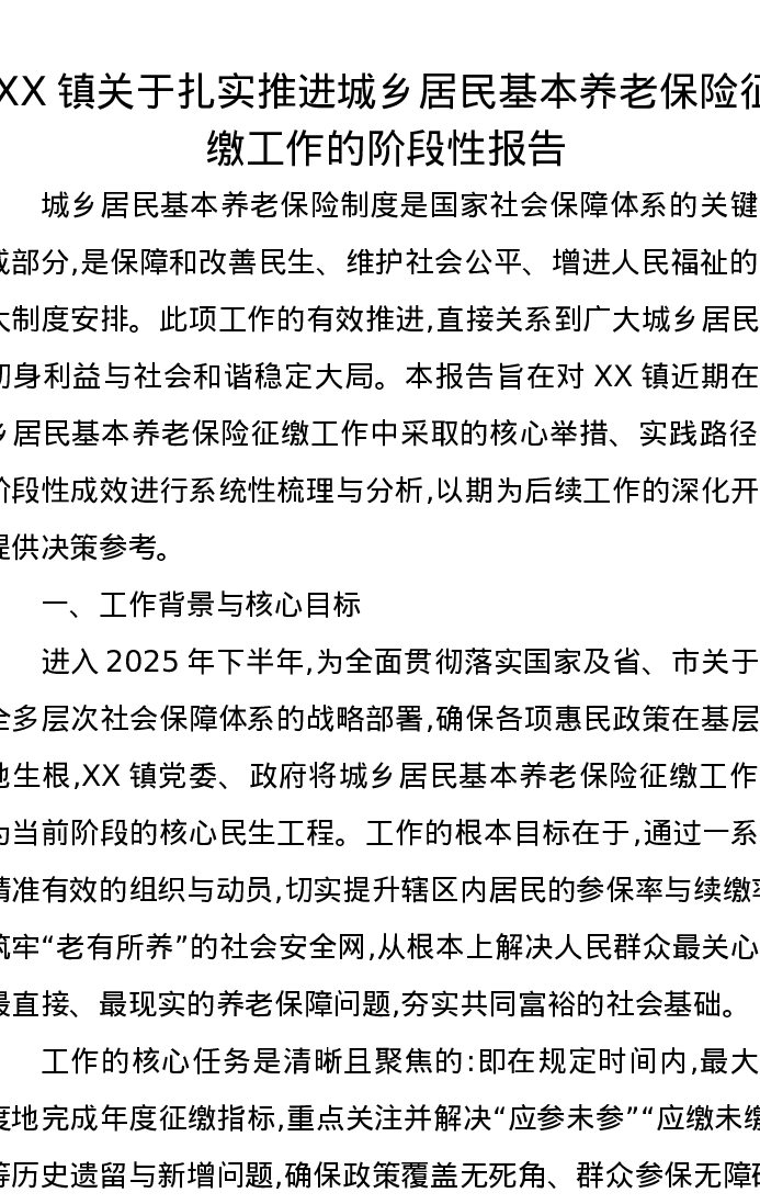 XX镇关于扎实推进城乡居民基本养老保险征缴工作的阶段性报告
