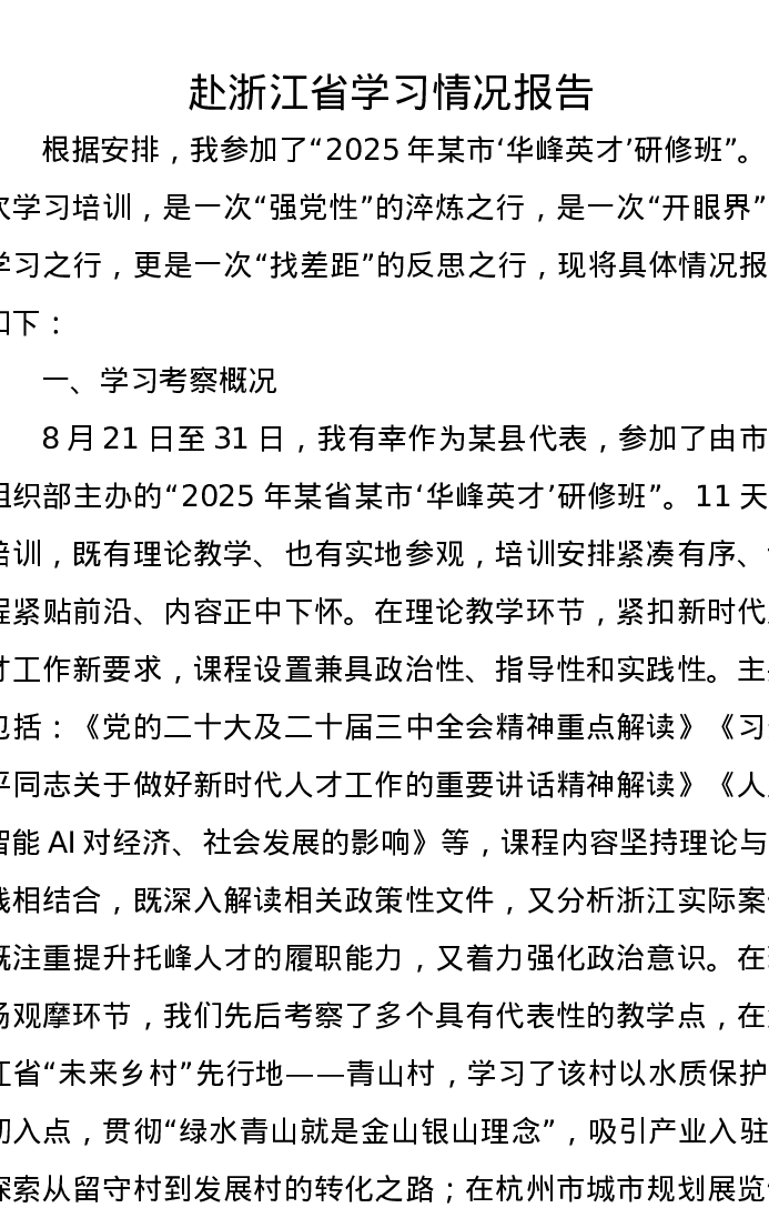 赴浙江省学习情况报告