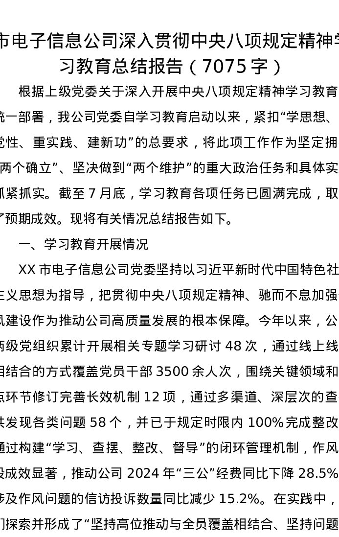 市电子信息公司深入贯彻中央八项规定精神学习教育总结报告(7075字)