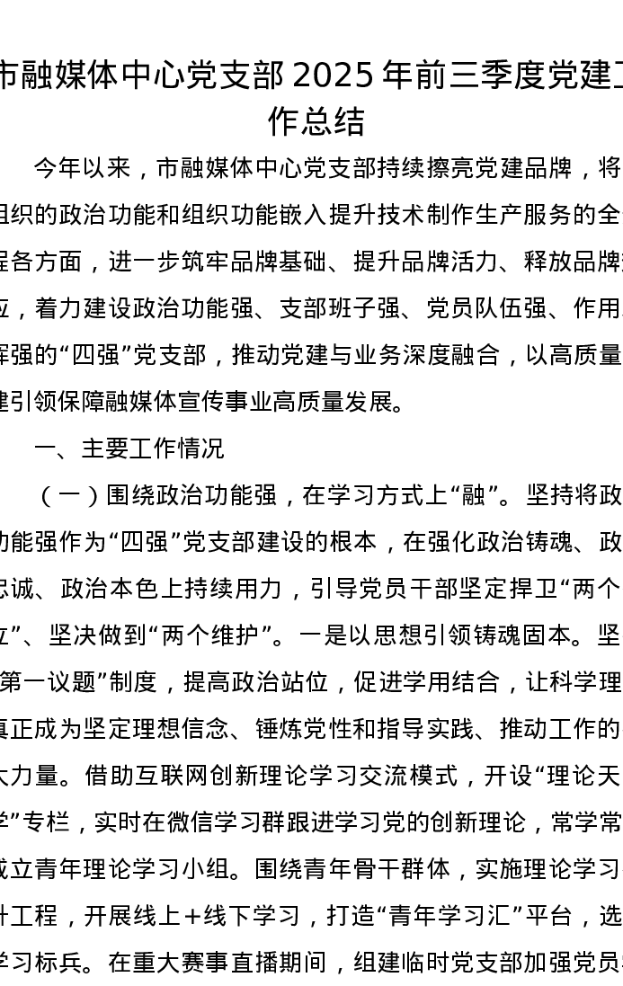 市融媒体中心党支部2025年前三季度党建工作总结