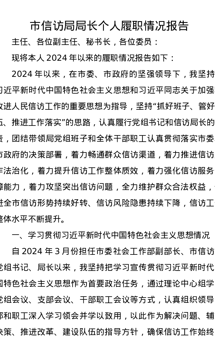 市信访局局长个人履职情况报告