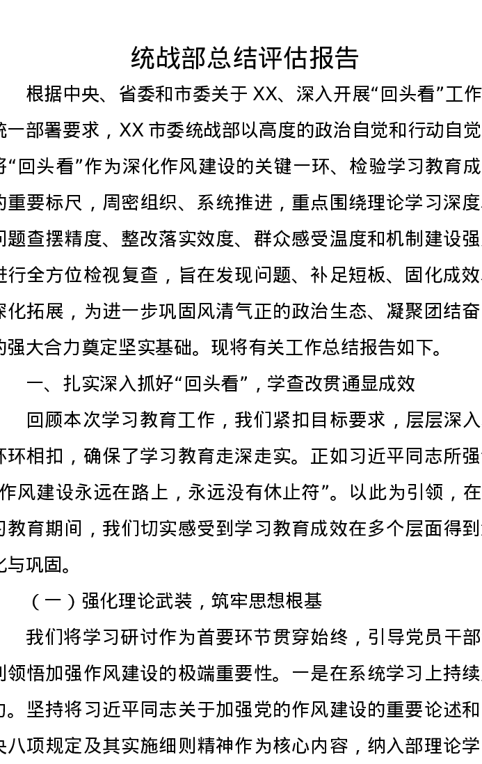 统战部贯彻中央八项规定精神学习教育总结评估报告