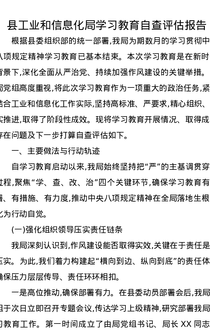 县工业和信息化局贯彻中央八项规定精神学习教育自查评估报告