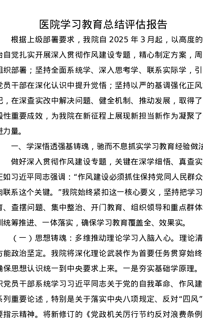 医院贯彻中央八项规定精神学习教育总结评估报告