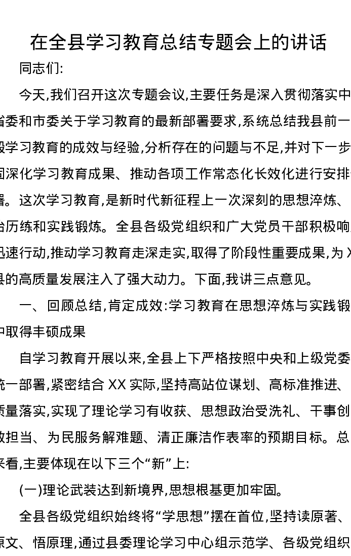 在全县贯彻中央八项规定精神学习教育总结专题会上的讲话4