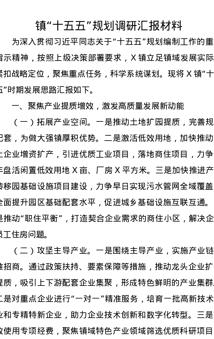 镇“十五五”规划调研汇报材料