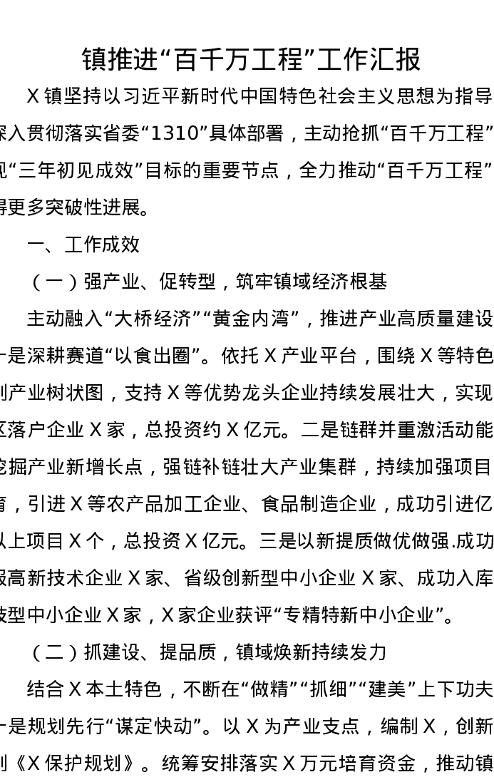 镇推进“百千万工程”工作汇报