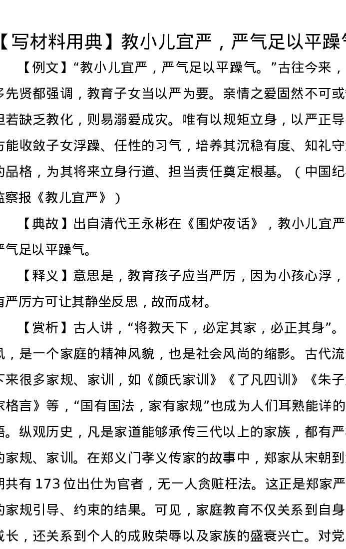 【写材料用典】教小儿宜严,严气足以平躁气