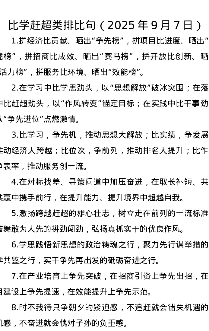比学赶超类排比句(2025年9月7日)