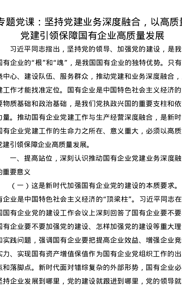 专题党课:坚持党建业务深度融合,以高质量党建引领保障国有企业高质量发展