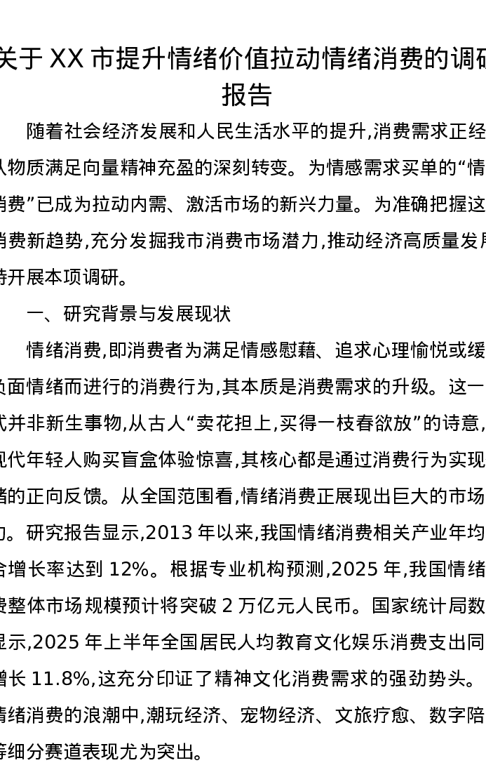 关于XX市提升情绪价值拉动情绪消费的调研报告