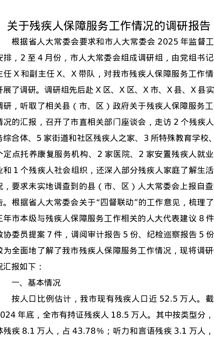 关于残疾人保障服务工作情况的调研报告