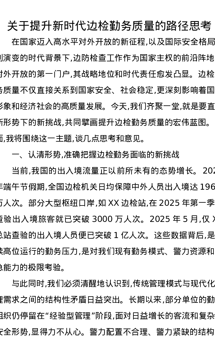 调研报告:关于提升新时代边检勤务质量的路径思考