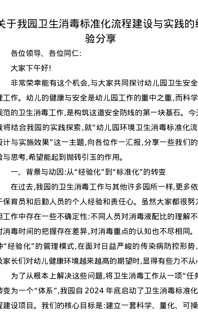 关于我园卫生消毒标准化流程建设与实践的经验分享