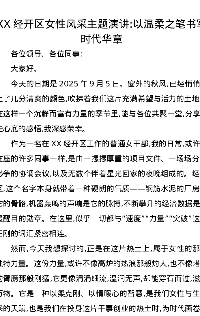 信息:XX经开区女性风采主题演讲以温柔之笔书写时代华章