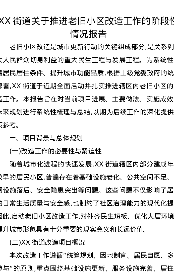 XX街道关于推进老旧小区改造工作的阶段性情况报告