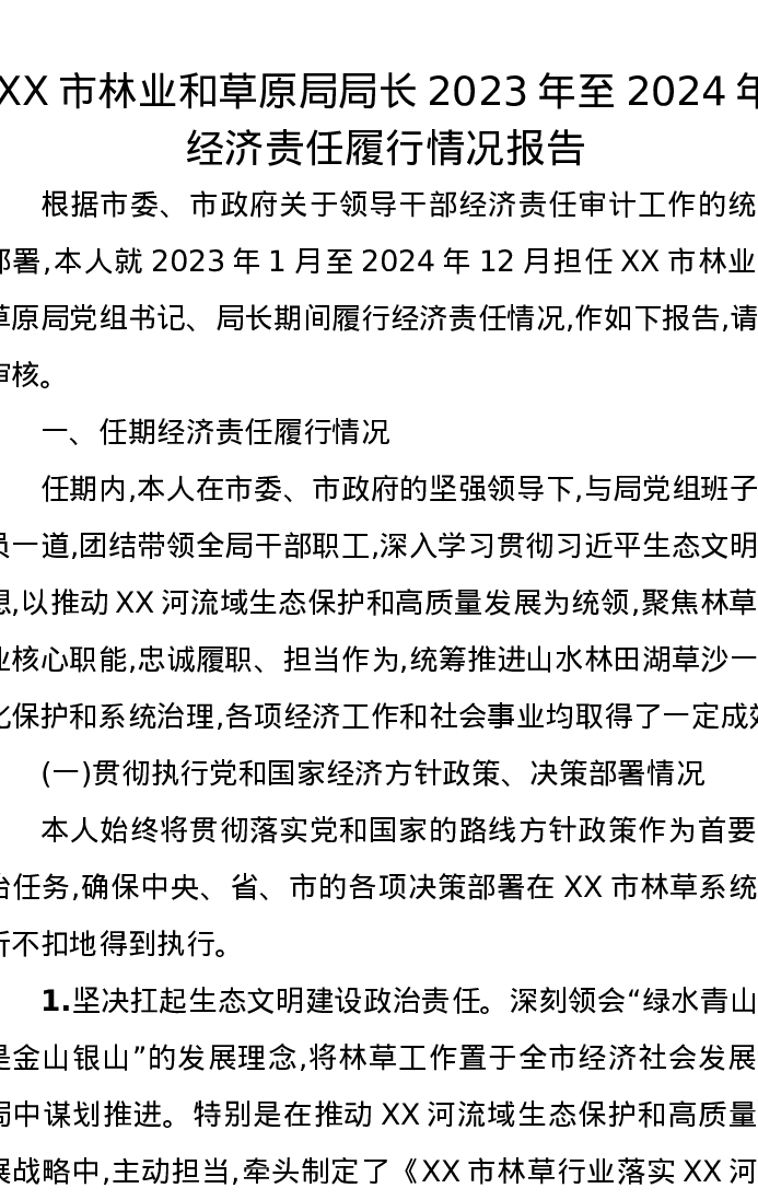 XX市林业和草原局局长2023年至2024年经济责任履行情况报告