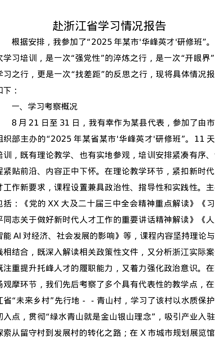 赴浙江省学习情况报告