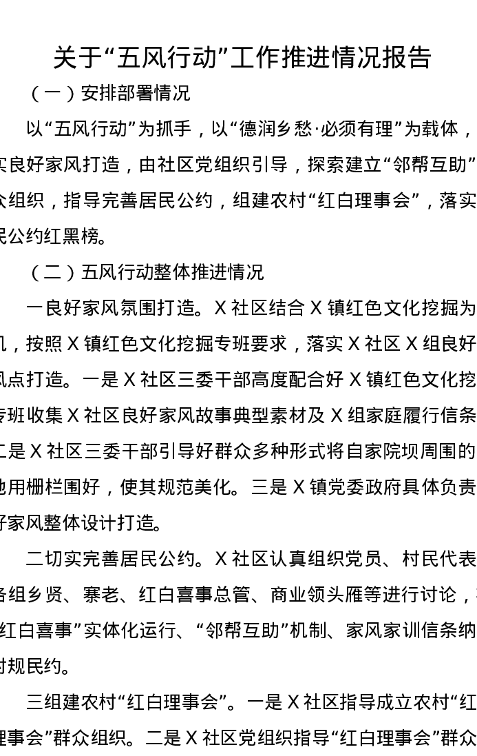 关于“五风行动”工作推进情况报告