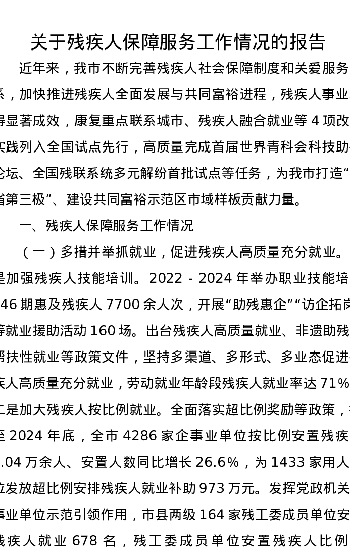 关于残疾人保障服务工作情况的报告