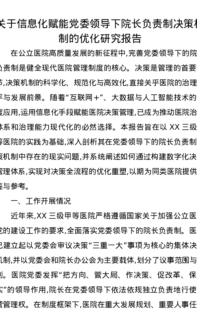 关于信息化赋能党委领导下院长负责制决策机制的优化研究报告