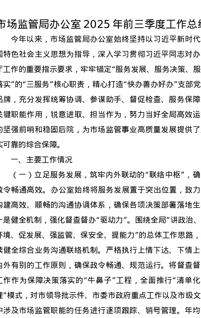 市场监管局办公室2025年前三季度工作总结
