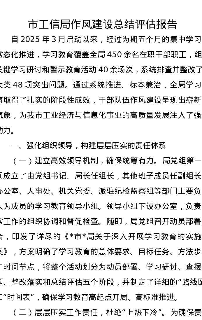 市工信局作风建设总结评估报告