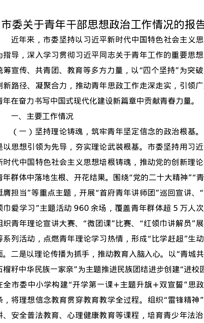 市委关于青年干部思想政治工作情况的报告