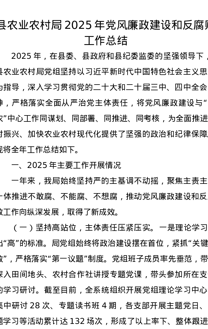 县农业农村局2025年党风廉政建设和反腐败工作总结