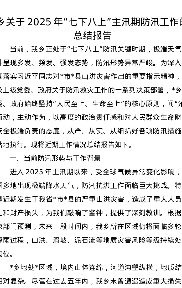 乡关于2025年“七下八上”主汛期防汛工作的总结报告