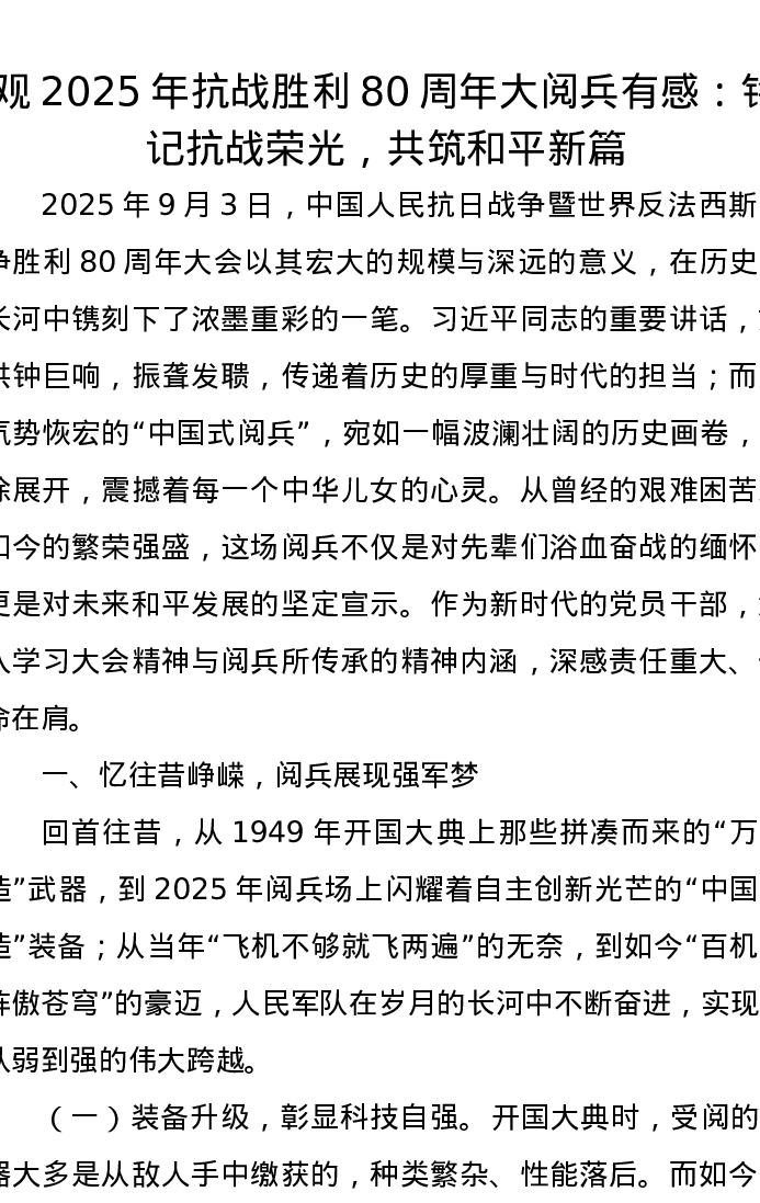 观2025年抗战胜利80周年大阅兵有感:铭记抗战荣光,共筑和平新篇