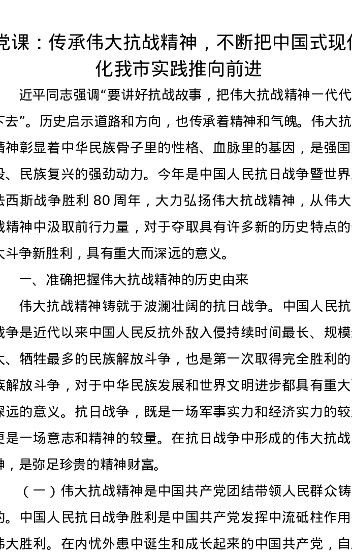 党课讲稿:传承伟大抗战精神,不断把中国式现代化我市实践推向前进