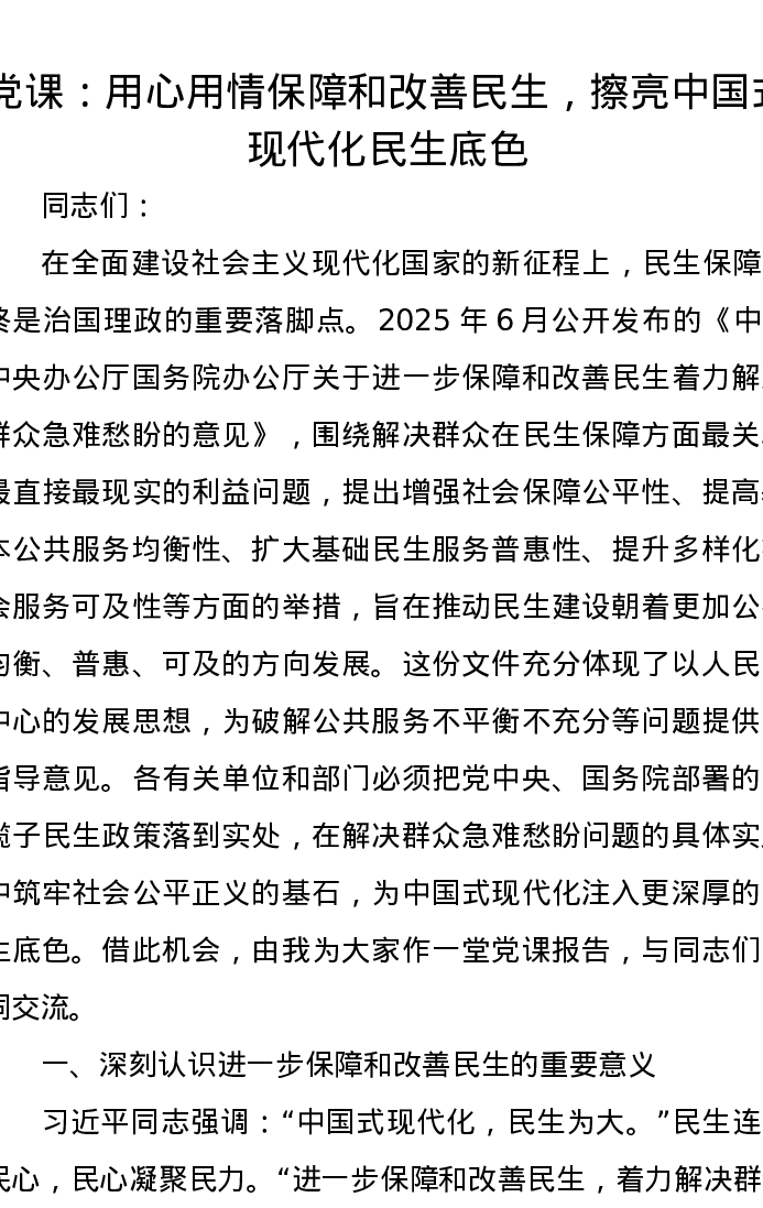 党课讲稿:用心用情保障和改善民生,擦亮中国式现代化民生底色