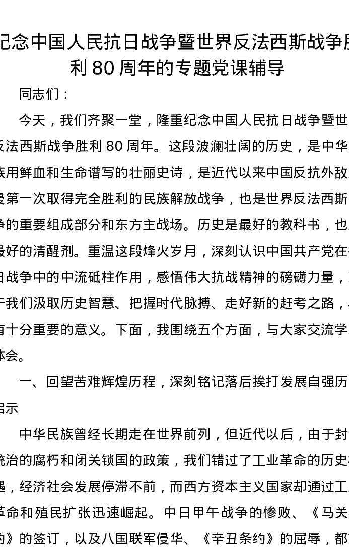 纪念中国人民抗日战争暨世界反法西斯战争胜利80周年的专题党课辅导