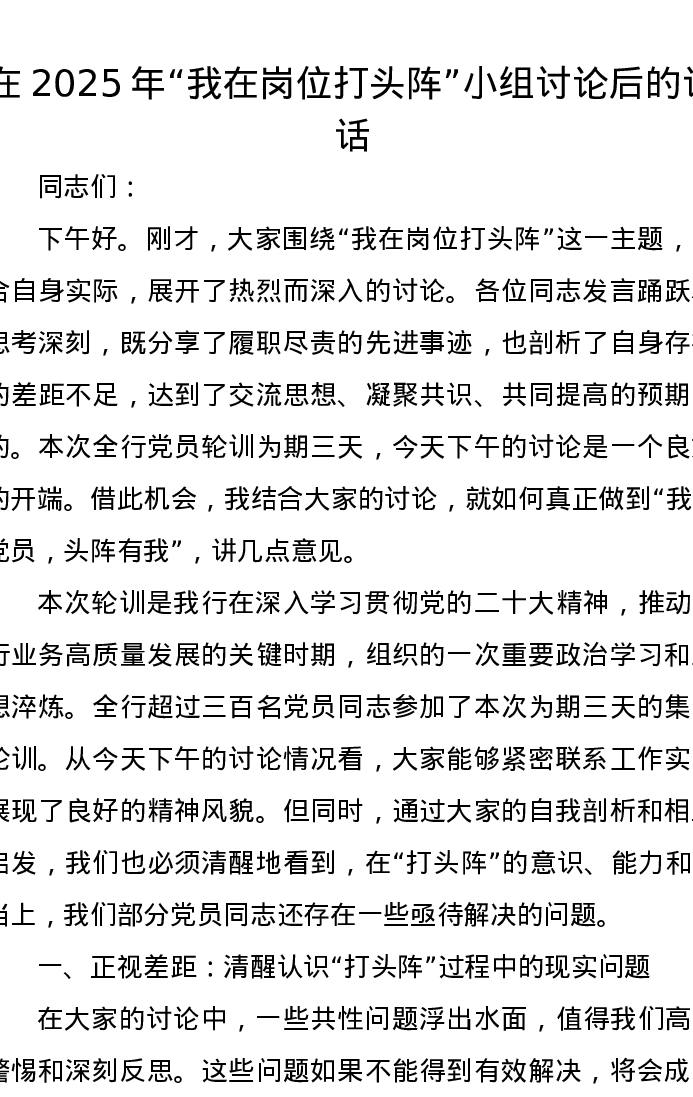 在2025年“我在岗位打头阵”小组讨论后的讲话