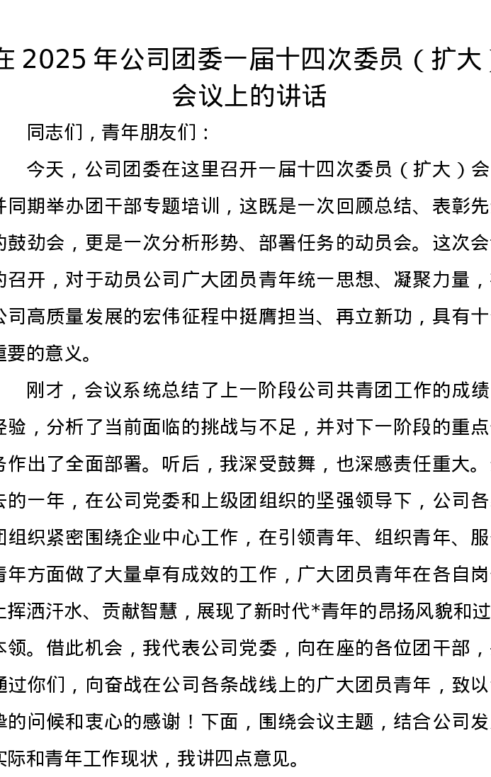 在2025年公司团委一届十四次委员(扩大)会议上的讲话
